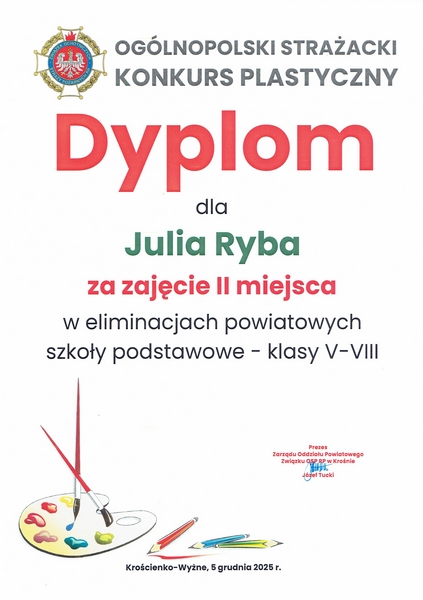 II miejsce - Tymon Głowa kl. IV - dyplom