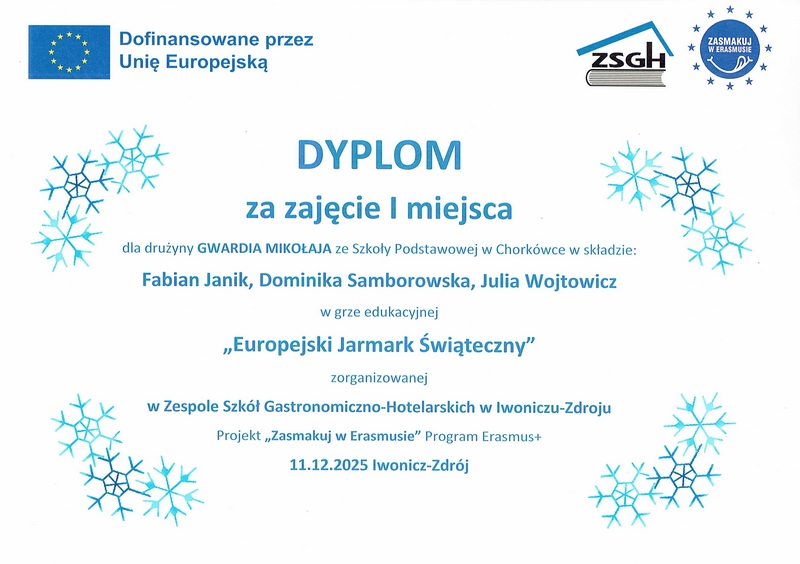 Julia Wojtowicz, Dominika Samborowska i Fabian Janik - dyplom