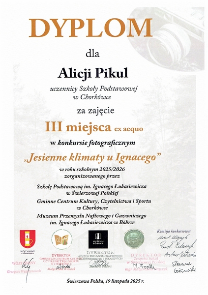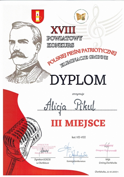 III miejsce - Alicja Pikul kl. VIII - dyplom