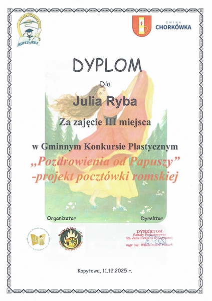 I miejsce - Antonina Liwosz kl. VII - dyplom