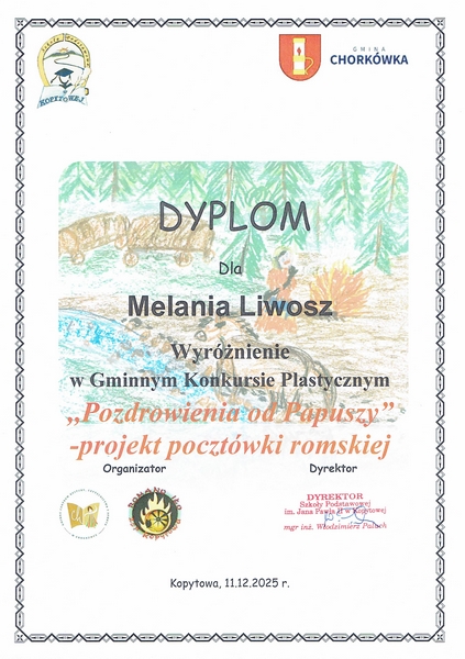 wyróżnienie - Melania Liwosz kl. V - dyplom