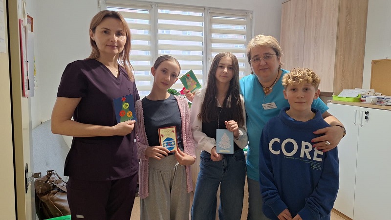 Kolejna wizyta przedstawicieli naszej szkoły w Domu Pomocy Społecznej w Krośnie odbyła się w pięknej, momentami wzruszającej atmosferze. Uczniowie 6 klasy: Ilona, Jagoda i Elias najpierw pomogli pensjonariuszu DPS w wykonaniu świątecznych gwiazd, a później każdemu wręczyli bożonarodzeniowe kartki wykonane przez wszystkich uczniów naszej szkoły. Były piękne świąteczne życzenia z obu stron, historie życia opowiadane np. przez 102-latkę, a nawet śpiewanie kolęd. Świąteczna atmosfera zawitała w  Domu Pomocy Społecznej i naszych sercach.