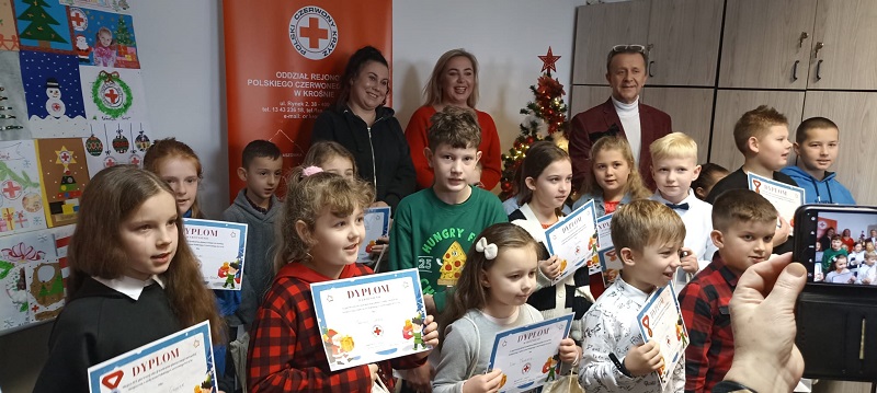 W budynku biura Oddziału Rejonowego PCK w Krośnie odbyła się uroczysta gala wręczenia nagród i dyplomów dla laureatów konkursu plastycznego na projekt kartki bożonarodzeniowej z motywem PCK i tematem przewodnim: „Święta razem”.