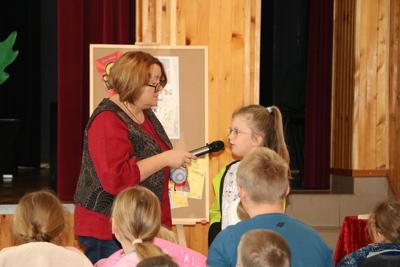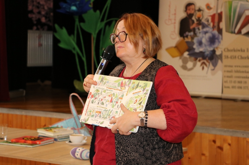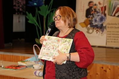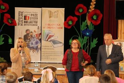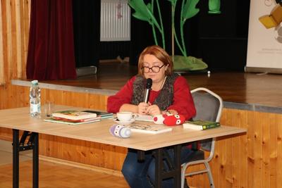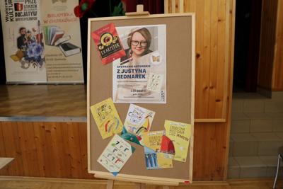 1 października 2025r. uczniowie klasy drugiej udali się do Gminnego Centrum Kultury Czytelnictwa i Sportu w Chorkówce, gdzie uczestniczyli w spotkaniu autorskim z pisarką książek dla dzieci panią Justyną Bednarek, która opowiedziała o swoim dzieciństwie, pracy zawodowej i o tym jak została pisarką. Uczniowie dowiedzieli się jak wygląda praca pisarza, skąd czerpie pomysły na kolejne książki i jak istotna w tym zawodzie jest wyobraźnia. Dzieci chętnie odpowiadały na pytania szczególnie te, które dotyczyły książki o 10 skarpetkach. Poznały także tytuły innych serii autorstwa pani Bednarek. Pisarka przeczytała fragment swojej książki pt. ,, Babcocha”, aby zachęcić wszystkich do poznania dalszych losów bohaterów. Po zakończeniu swojego wystąpienia autorka rozdawała autografy wpisując je do przyniesionych przez uczniów książek.