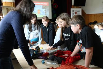 Podczas warsztatów uczniowie mogli wcielić się w rolę młodych odkrywców, poznali przygotowania do górskiej wyprawy. Dowiedzieli się jak wygląda wyposażenie podróżnika, co należy spakować do plecaka, jak się ubrać i jak zadbać o swoje bezpieczeństwo? Mieli również okazję nauczyć się rozpoznawać tropy zwierząt, a także właściwych zachowań w wypadku spotkania z dzikimi zwierzętami bądź niebezpiecznymi psami.