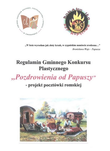 Zachęcamy wszystkich uczniów klas IV-VIII do udziału w konkursie plastycznym na wykonanie projektu pocztówki romskiej inspirowany twórczością poetki Bronisławy Wajs – Papuszy "Pozdrowienia od Papuszy"