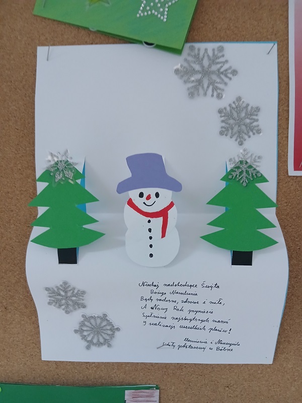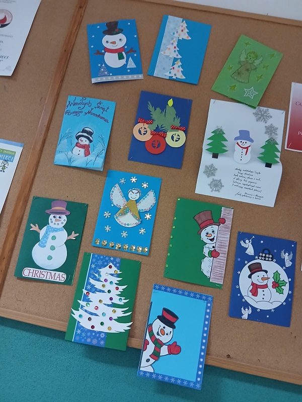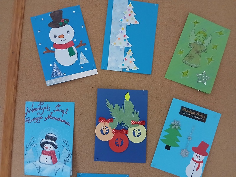 W okresie przedświątecznym uczniowie naszej szkoły wzięli udział w wymianie kartek świątecznych z uczniami z innych szkół. Akcja została zorganizowana przez Samorząd Uczniowski SP Żeglcach. Kartki były wykonane własnoręcznie, a ich motywem przewodnim były bałwanki i aniołki. Zawierały one serdeczne życzenia świąteczne oraz noworoczne.