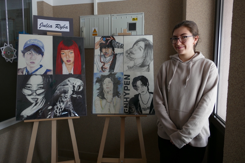W tym roku szkolnym miała już wystawę swoich prac, obecnie to już jej piąta wystawa. Julia jest laureatką wielu konkursów plastycznych organizowanych w szkole i przez różne instytucje pozaszkolne. Zachęcamy wszystkich uczniów do zapoznania się z jej twórczością w galerii szkolnej.