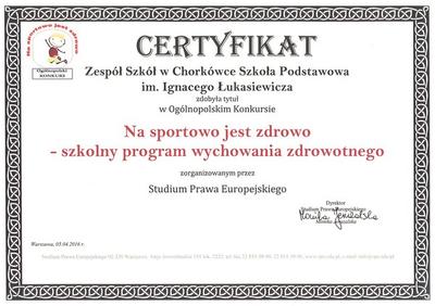 W okresie od 05.10.2015 do 05.04.2016 nasza szkoła uczestniczyła w ogólnopolskim konkursie „Na sportowo jest zdrowo- szkolny program wychowania zdrowotnego” realizowanym przez Studium Prawa Europejskiego, którego celem było promowanie zdrowego i aktywnego stylu życia. Należało...