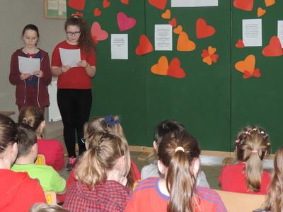 12 lutego w naszej szkole obchodziliśmy WALENTYNKI. Na ten dzień z niecierpliwością czekał niejeden z nas! Już od rana wyczekiwaliśmy momentu, kiedy przedstawicielki Samorządu Uczniowskiego rozpoczną świętowanie. A zaczęliśmy od tego, iż prawie każdy z nas ubrał się na czerwono - wiadomo...