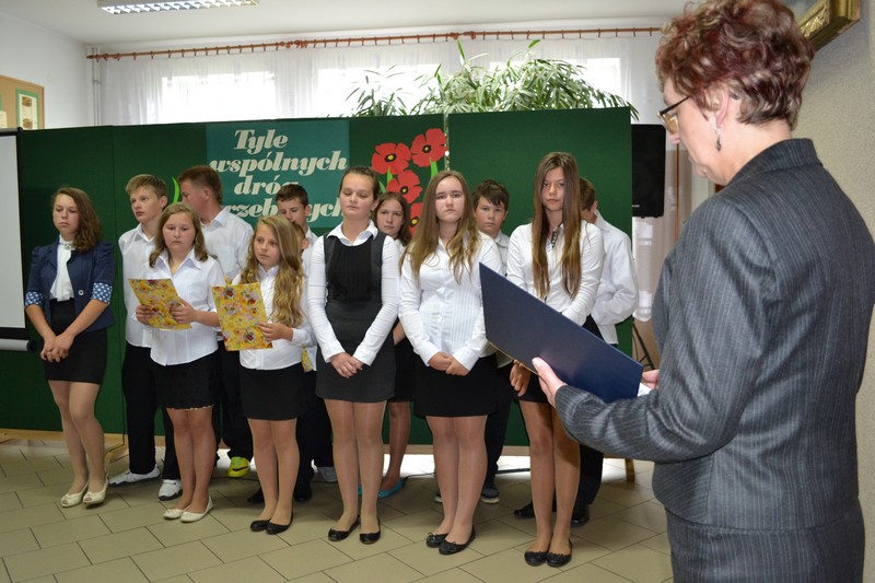 Uroczystość rozpoczęła się od przekazania sztandaru młodszym kolegom. W pierwszej części apelu piątoklasiści pożegnali starszych kolegów i koleżanki piosenkami i wierszami. W dowód przyjaźni ofiarowali im drobne upominki oraz płyty zawierające pamiątkowe zdjęcia. Następnie klasa VI pożegnała się ze szkołą i nauczycielami. Na zakończenie części oficjalnej wręczone zostały listy gratulacyjne rodzicom szóstoklasistów, którzy niejednokrotnie swoimi osiągnięciami sławili imię szkoły i przydawali dumy pedagogom. Ostatnim punktem dzisiejszego apelu było obejrzenie slajdów z wycieczek i uroczystości szkolnych, począwszy od 2008 roku. To był naprawdę świetny pomysł! Te uśmiechnięte, pyzate buzie sprzed lat mówiły same za siebie!