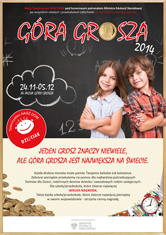 Nasza szkoła po raz kolejny bierze udział w XV Akcji Góra Grosza, której głównym organizatorem jest Towarzystwo Nasz Dom. Zbiórkę monet o nominałach od 1 grosza do 5 złotych rozpoczynamy 7 listopada 2014 roku, trwać będzie do końca grudnia 2014r. Głównym celem naszej akcji jest zebranie funduszy na pomoc najbardziej potrzebującym dzieciom wychowującym się poza własną rodziną.