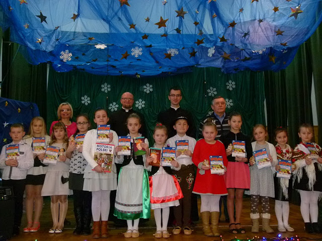 28 stycznia dzieci z przedszkola oraz uczniowie naszej szkoły brali udział w Gminnym Konkursie Kolęd i Pastorałek organizowanym przez GOK w Chorkówce. Zespół z przedszkola w składzie: Małgosia Buczyńska, Maja Serwińska i Maciej Munia otrzymali I miejsce w swojej kategorii. Kolejne uczestniczki, to uczennice klasy II: Maja Samborowska i Julia Widziszewska. Maja otrzymała III miejsce w kategorii klas I-III, a Julia wyróżnienie. Zespół z klasy VI w składzie: Karolina Foremny, Weronika Skalska, Damian Kijek i Wiktor Kludacz otrzymał II miejsce w kategorii zespołów klas IV-VI. Serdecznie gratulujemy wszystkim nagrodzonym uczestnikom konkursu.