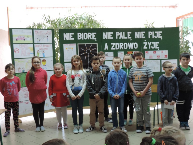 Dzieci i młodzież są obecnie stale narażone na kontakty z używkami, takimi jak alkohol, narkotyki czy papierosy. Chcemy uchronić dzieci przed nałogiem i uniknąć przykrych konsekwencji uzależnień. Wiemy, że przeciwdziałanie temu problemowi jest znacznie skuteczniejsze niż leczenie jego skutków. W tym celu w szkole podejmowane są różnorodne działania, między innymi 16. 03. uczniowie klasy II i III zaprezentowali krótkie scenki, w których przekazali kluczowe informacje na temat niebezpieczeństw i pułapek związanych z używkami. Uczniowie dowiedzieli się też, że picie alkoholu, palenie papierosów i branie narkotyków jest zakazane, a zasada ta jest stworzona z miłości i troski o ich dobro.