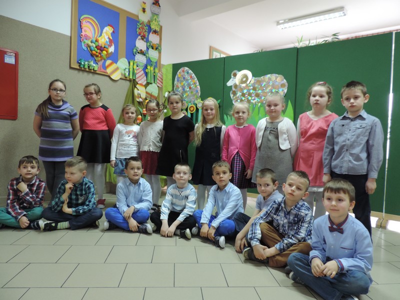 23 marca apelem prezentującym zwyczaje i tradycje Świąt Wielkanocnych uczniowie klasy pierwszej wprowadzili wszystkich w świąteczną atmosferę. Wystąpili także uczniowie klas starszych śpiewając piosenki o mazurkach, pisankach, zajączkach i kurczakach. Wspaniałym tłem do prezentowanych wierszy i piosenek były prace uczniów przygotowywane na corocznie organizowane konkursy twórczości wielkanocnej.