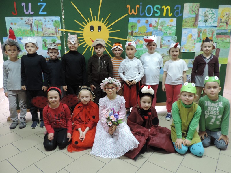 Na tablicach wyeksponowane zostały prace uczniów o dowolnej tematyce wiosennej pod hasłem "Wiosna radosna". Uczniowie klas młodszych prezentowali przygotowane przez siebie stroje zwierząt, ptaków i owadów cieszących się z przybycia wiosny. Każda klasa zaprezentowała przygotowaną przez siebie piosenkę o tematyce wiosennej.