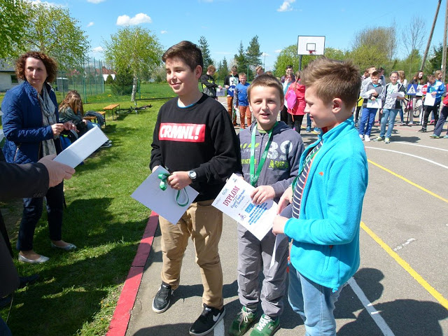 W tym roku naszą szkołę reprezentowała drużyna w składzie: Damian Kijek kl. VI, Krzysztof Samborowski kl. V oraz Szymon Węgrzynowski kl. V. Dziesięć drużyn ze szkół podstawowych naszej gminy oraz uczniowie gimnazjum rywalizowali w dwóch etapach, pisali test składający się z 25 pytań z zakresu wychowania komunikacyjnego. Druga część konkurencji polegała na wykonaniu zadań jazdy na rowerze w miasteczku ruchu drogowego. Nasi uczniowie zajęli wysokie II miejsce. Wszyscy uczestnicy eliminacji otrzymali pamiątkowe dyplomy i nagrody rzeczowe.