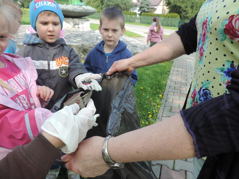 Udział w akcji porządkowej „Góra śmieci Ziemię szpeci”, sprzątanie najbliższej okolicy, wykonanie transparentów z hasłami nawołującymi do dbania o czystość, przejście w barwnym pochodzie ulicami wioski to część projektu edukacyjnego „W obronie Ziemi”. 6 maja uczniowie naszej szkoły zaopatrzeni w worki i rękawiczki ruszyli ulicami wioski. Finałem sprzątania był pochód młodych ekologów nawołujących wymyślonymi przez siebie hasłami do zachowania czystości. Każda klasa wykonała gazetkę informacyjną, a uczniowie klasy VI w ramach akcji „Kto tworzy dzikie wysypiska – ten z przyrody nic nie zyska”– zlokalizowali i stworzyli mapę dzikich wysypisk w najbliższej okolicy. Wielu uczniów pod hasłem „Nasze rady na odpady” pokazało jak powtórnie wykorzystać materiały odpadowe i wykonać z nich przedmioty użytkowe lub ozdobne. Uczniowie klas I – III zwiedzili remizę strażacką i podczas spotkania ze strażakiem dowiedzieli się jaką szkodą dla środowiska jest wypalanie traw. We wszystkich klasach odbyły się konkursy ekologiczne.