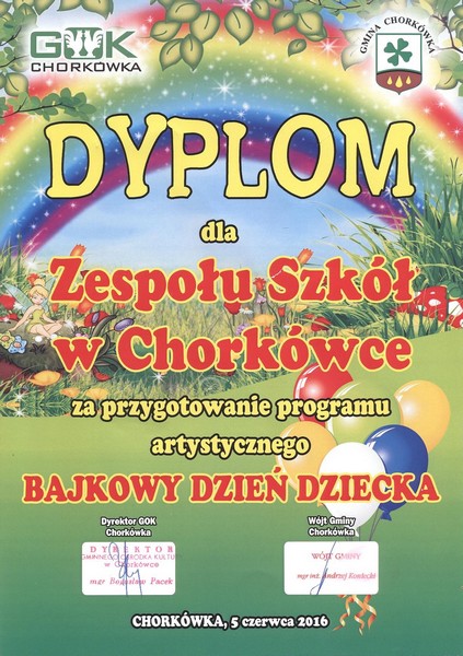 5.05.2016r. dzieci z naszego przedszkola zaprezentowały się na scenie z okazji "Bajkowego Dnia Dziecka" zorganizowanego przez Gminny Ośrodek Kultury w Chorkówce.