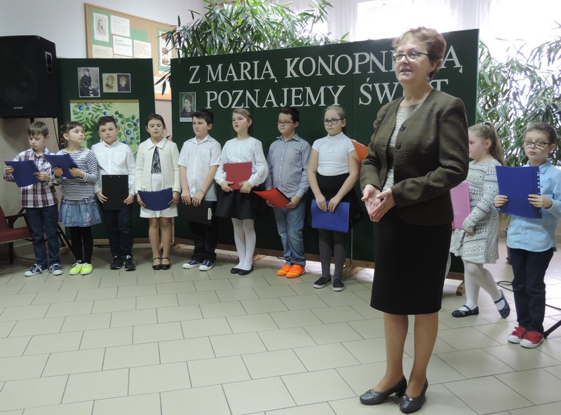 Zaproszeni goście uświetnili tę uroczystość swoim przybyciem i odczytaniem wybranych utworów Marii Konopnickiej. W miłej atmosferze utwory czytali: p. E. Widziszewski, p. B. Wierdak, p. L. Liwosz, p. M. Fiałkiewicz, p. T. Samborowska, p. B. Pilawska, p. I. Słota oraz uczennica kl. VI – Weronika Prętnik. Wszystkim jesteśmy bardzo wdzięczni za te wspólne przeżycia: niezwykły nastrój, miłą atmosferę, liczne przybycie. Cieszymy się, że możemy na Państwa liczyć i prosimy o dalszą współpracę.