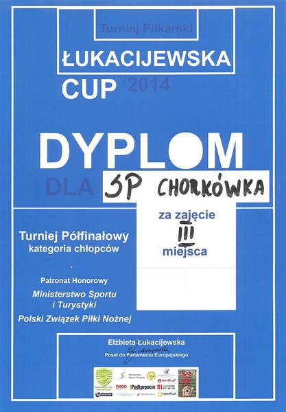6 maja 2014 r. w Krośnie na Euroboisku przy ulicy Bursaki odbył się półfinał turnieju piłkarskiego Łukaciejewska Cup. W rozgrywkach wzięło udział 4 drużyny reprezentujące szkoły podstawowe z Krosna oraz nasza drużyna. W wyniku rozgrywek każdy z każdym ostatecznie zajęliśmy 3 miejsce.