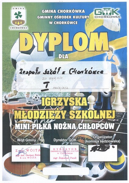 W dniu 7 maja 2014 nasza szkoła była organizatorem gminnych zawodów w mini piłce nożnej szkół podstawowych Gminy Chorkówka. W turnieju wzięło udział 8 szkół. Drużyny zostały podzielone na 2 grupy po 4 drużyny (rozgrywki odbywały się w systemie każdy z każdym). Zwycięzcy grup grały półfinały a potem finał i mecz o 3 miejsce. W finale wystąpiła drużyna naszej szkoły oraz SP Kobylany. Ostatecznie po serii rzutów karnych wygrała drużyna SP Chorkówka i ona została zwycięzcą turnieju.